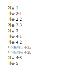 "submenus": ["사이드메뉴 4-2a", "사이드메뉴 4-2b"]